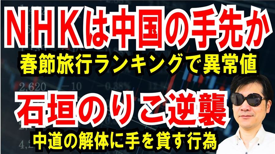 【NHKまた偏向報道】春節旅行ランキングで異常値【石垣のりこ逆襲】中道解体に手を貸す