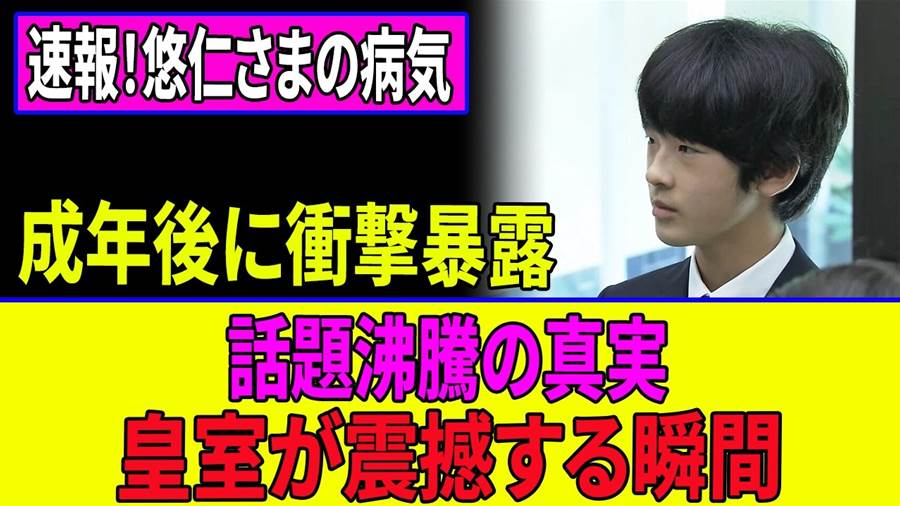 【大話題沸騰】悠仁さまのご病気が成年後に衝撃暴露!明らかになった事実が皇室の未来を揺るがす全真相!!