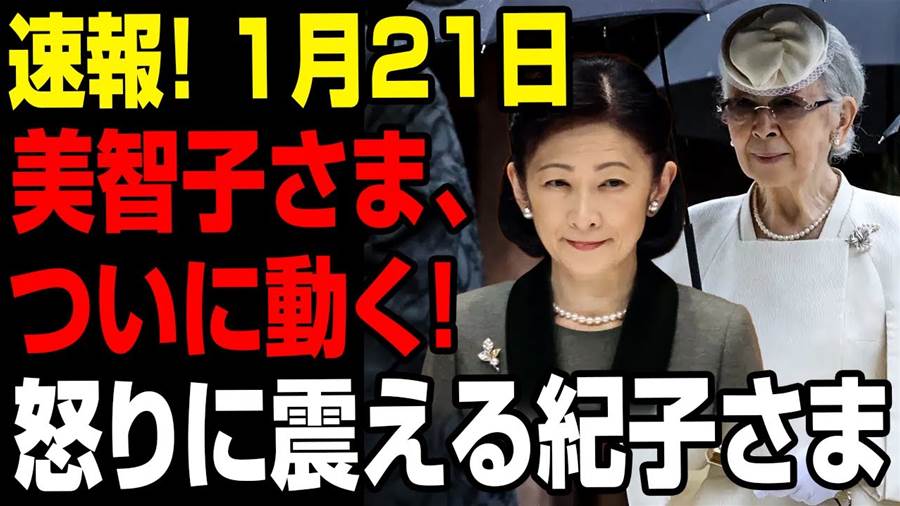 【超速報!1月21日】美智子さま、ついに歴史的決断を下す!紀子さまの激怒が爆発、皇室が大激震に襲われる!!1月21日に報じられた衝撃的なニュースに、日本中が驚きを隠せない状況となっています。美智子さまがついにこれまでの立場を大きく転換し、「皇位継承問題」に関して歴史的な決断を下したのです。一方で紀子さまの怒りが爆発し、皇室全体に影響を与える重大な出来事が浮上しています。美智子さまと紀子さまは過去、親密な関係を築いており、特別な信頼関係を持っていました。しかし、それが今や完全に崩壊したと言っても過言ではありません。その最大の理由は秋篠宮家を巡る問題や国民の間で高まる愛子さまへの期待が影響していると見られます。かつて紀子さまの支援者だった美智子さまは、自らの判断で愛子さまの皇位継承に理解を示す姿勢を明らかにしました。この変化は、皇室内外で波紋を広げ、特に紀子さまの立場を一層難しいものにしています。美智子さまによる歴史的決断は皇室の未来を新しい時代へと導く可能性がありますが、それに向けた道のりは容易ではないでしょう。