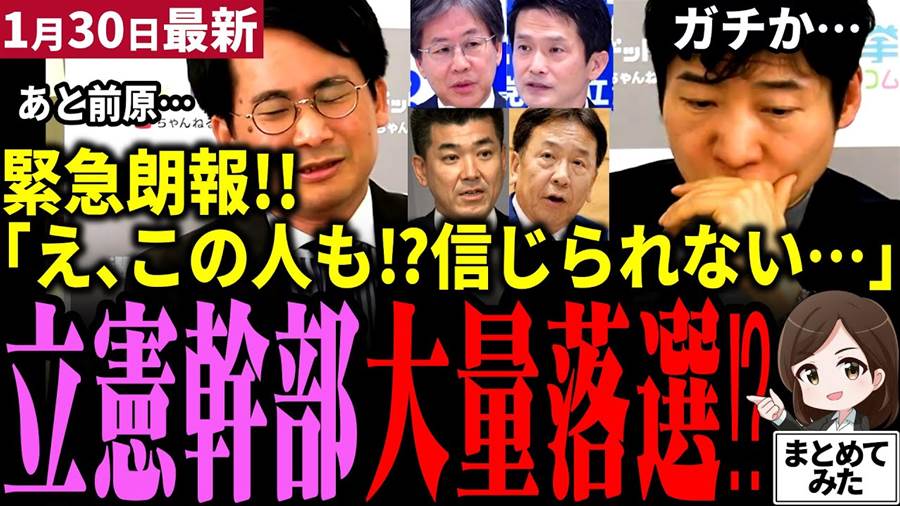 衆院選公示から間もない2026年1月30日、各社が更新した序盤情勢が政界を凍らせた。自民党は単独過半数をうかがう勢い――しかも「中道岡田(岡田克也)が遂に落選か…」と囁かれるほど、枝野幸男、安住淳、小川淳也、泉健太までが“接戦”の渦中に放り込まれたのだ。数字は伏せられ、「横一線」「競り合う」「ややリード」といった表現が、逆に不気味さを増幅させる。選挙ドットコムでは山本氏と朝日新聞の今野氏が資料を前に言葉を失い、頭を抱えた。かつて安倍政権期を思わせる自民優勢――その中心に高市の名が重なるたび、会場の空気は重く沈む。だが自民党内は浮かれない。幹事長名の文書は「期日前投票は始まったばかり。ここからが本番」と戒め、毎日を投票日として戦えと通達する。熱狂ではなく、静かな潮目が動く。高市は本当に“安倍超え”へ至るのか、そして中道改革連合は崩れるのか。答えは、まだ投票箱の中にしかない。