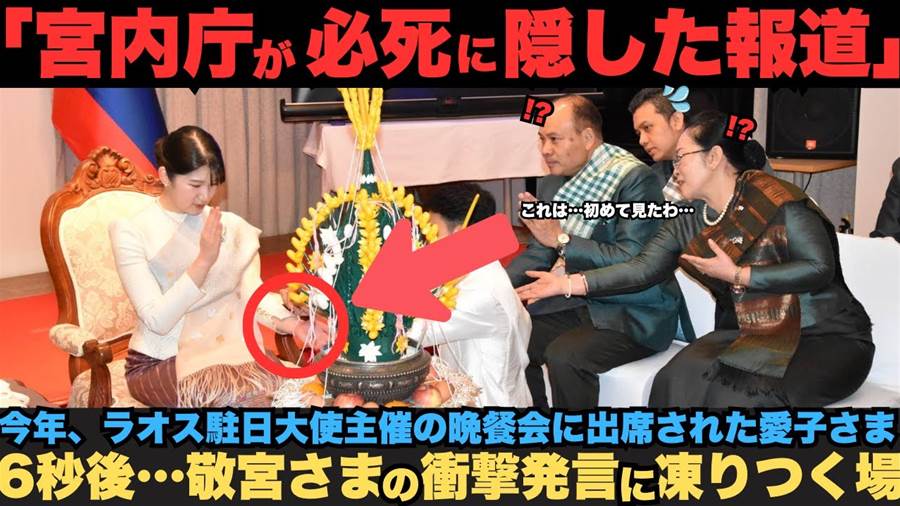2026年1月28日、敬宮愛子さまは東京都港区のラオス人民民主共和国大使館で開催された晩餐会にご出席されました。当日の愛子さまは、昨年のラオス公式訪問時に贈られた民族衣装をお召しになり、その優雅なお姿が大使館の公式Facebookに掲載されました。 しかし、この外交的重要行事に関する報道は極めて限定的で、宮内庁の公式記録があるにもかかわらず、メディアではほとんど触れられませんでした。その理由を巡って一部で憶測が飛び交い、「宮内庁が意図的に抑制したのではないか」という声もあがっています。 晩餐会では、ラオスの伝統儀礼「スープワン」が行われました。この儀礼は、魂と魂を結びつけるものとしてラオスでは重要視されており、愛子さまは公式訪問時にこの儀式を体験し、その伝統の重要性を深く理解されていました。象徴的な意図を3か月以上手首に保管されていたことが明らかになると、ラオス大使夫妻はその敬意と深い配慮に驚きを隠せなかったと言います。