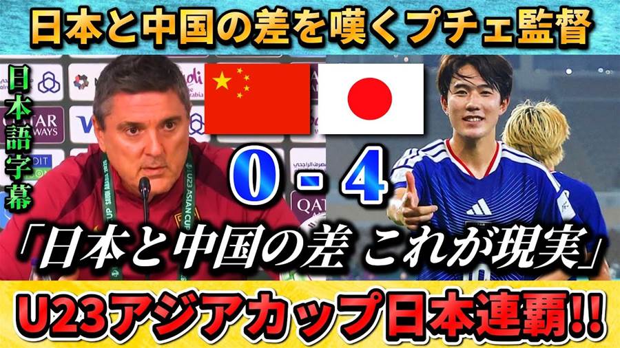 U23中国代表のプチェ監督は、日本チームとの対戦後、深い溜息をつきながら、「これが現実です」と語った。彼は試合中に見せた日本チームの戦術的な洗練と若い選手たちの卓越した技術に感銘を受けた。日本は参加した若手選手たちが主力を欠いた状況でも、大会初の連覇を成し遂げ、その力を主張した。この成果はロス五輪世代のさらなる可能性を示している。プチェ監督は、「日本はまたしても私たちにスピードと技術で圧倒した」と話し、その差を痛感したと言います。彼の思いは、中国の若い選手たちのスタッフにも強く伝わり、彼らはこの試合を成長の足掛かりにすると誓った。彼は、「私たちも学び続けなければならない」と結び、未来への希望を抱き続けていることを示した。今後の改善に期待を寄せ、この大会を終えた。