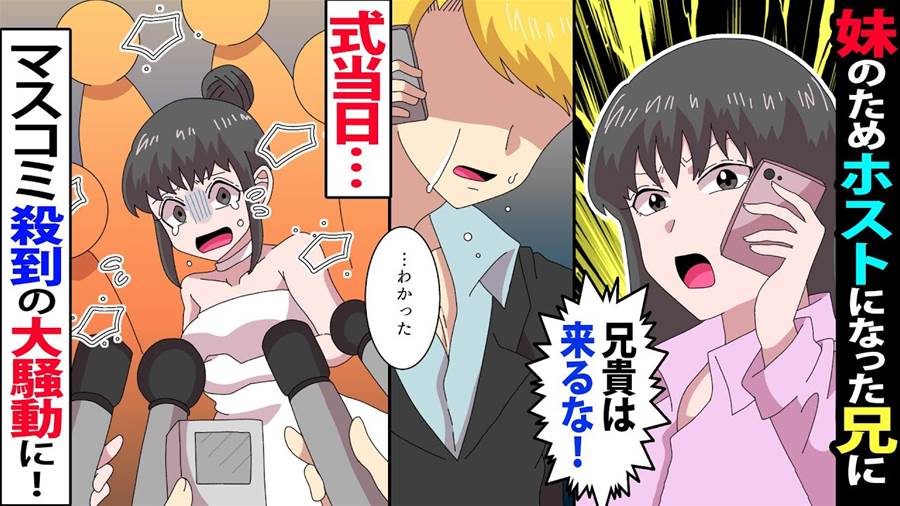 【漫画】妹を大学へ進学させるためホストにかけた兄に妹「結婚式来るな。兄貴とは一生付き合わないから」→結婚式当日、式場に意外な人物たちが…【マンガ動画】