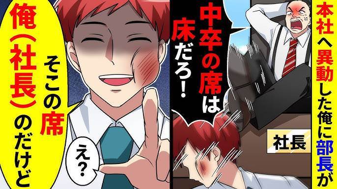 本社へ異動した俺に部長が「中卒の席は床だろ!」と蹴りを入れてきた。そこの席、俺(社長)のだけどと言ったら