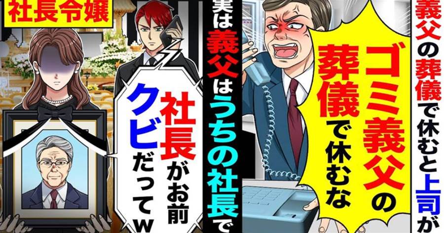 【スカッと】義父の葬儀で会社休むと上司が「ゴミ義父の葬儀で休むな」→「社長がお前いらねぇってw」「…」だが実は義父はうちの社長で